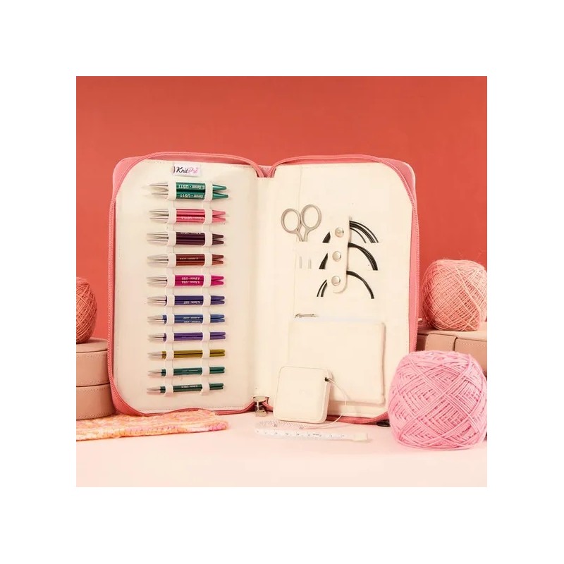 Ook is de set voorzien van 8 eindstops voor op de kabel, 1 set kabel connectors, 1 schaartje, 1 rolmaat, 2 wolnaalden, 10 sluitbare stekenmarkeerders en 10 ronde stekenmarkeerders. Al deze items zitten verpakt in een mooie stevige opbergetui.