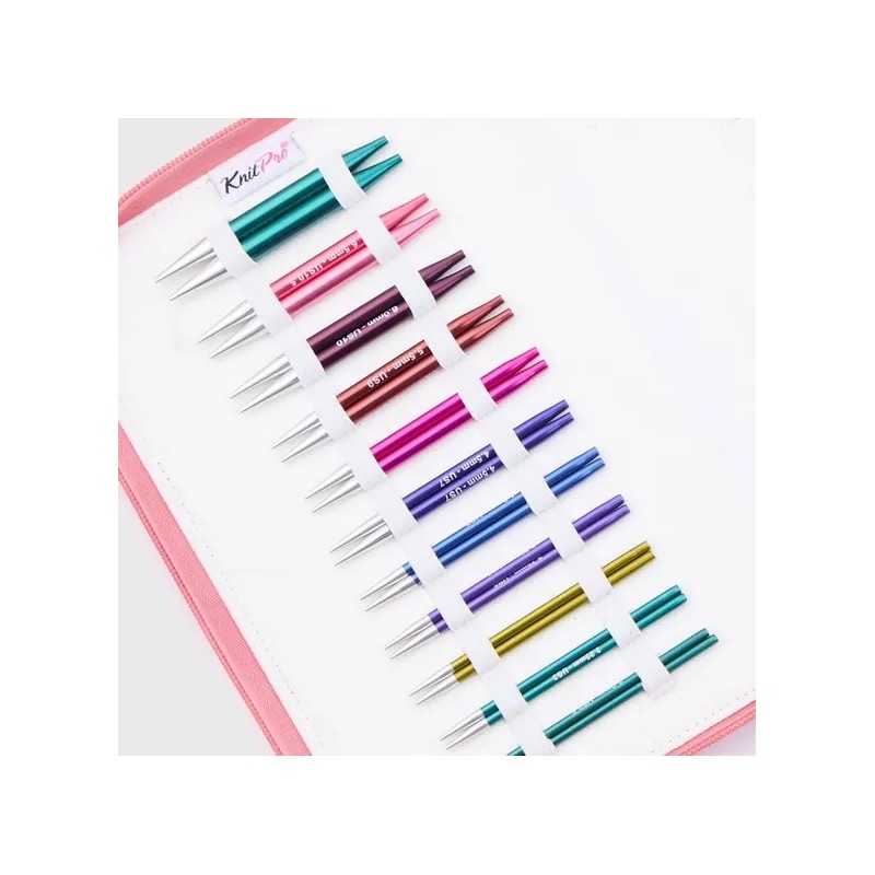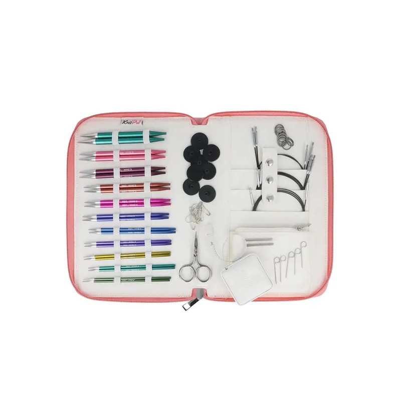 De KnitPro Zing rondbreinaaldset Regal bestaat uit 11 paar aluminium naaldpunten in de maten 3.0mm, 3.25mm, 3.5mm, 3.75mm, 4mm, 4.5mm, 5mm, 5.5mm, 6mm, 6.5mm en 8mm die gecombineerd kunnen worden met verschillende lengtes (2 x 60, 2 x 80, en 100cm) swivel kabels met een stalen kern..