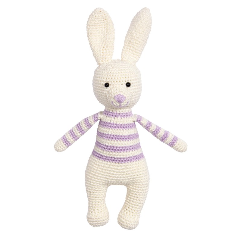 Deze lieve haas met streepjesmotiefje wordt gehaakt van de Lana Grossa Cotone.