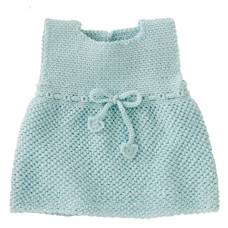 Dit schattige jurkje met koordje rond het middel wordt gehaakt van de Lana Grossa Cool Wool Baby.