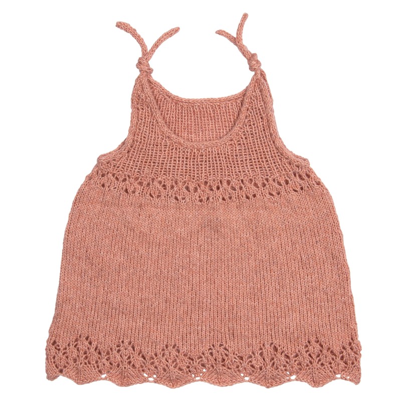 Dit schattige jurkje met leuke ajourpatroon wordt gebreid van de Lana Grossa Ecopuno.