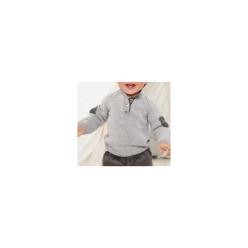 Dit stoere kindertruitje met elleboogstukken in een contrasterende kleur wordt gebreid van de Cool Wool Big van Lana Grossa Lana Grossa.