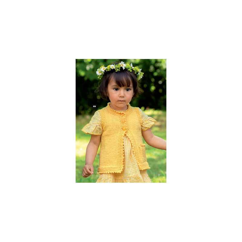 Dit leuke hesje met knoopjes en omgehaakte rand wordt gebreid van de Elastico van Lana Grossa.