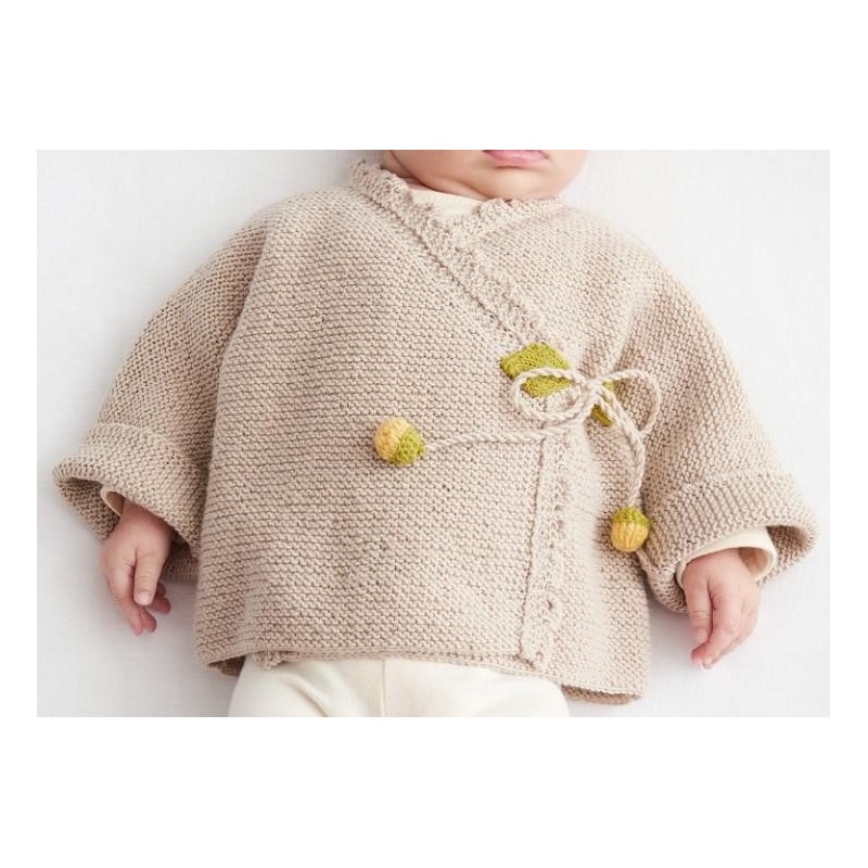Dit leuke wikkeljasje is gebreid van het garen Cool Wool Baby van Lana Grossa.