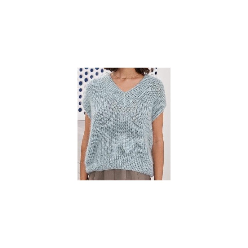 Dit elegante shirt wordt in halve patentsteek gebreid van de Ecopuno en Silkhair van Lana Grossa.