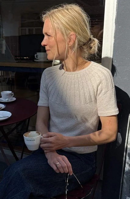 De Sunday Tee van PetiteKnit wordt topdown aan één stuk gebreid van de Sandnes Tynn Line. De ronde pas wordt met meerderingen in boordsteekpatroon gevormd. Hierna wordt de rest van het shirt in tricotsteek in het rond verder gebreid.