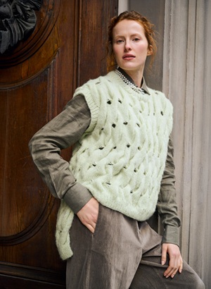 Deze leuke slipover met kabels wordt gebreid van de Lana Grossa Nebbia.