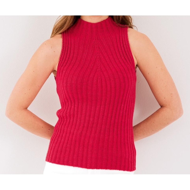 Deze leuke top in boordpatroon wordt gebreid van de linarte van Lana Grossa.