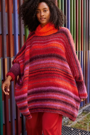 Deze oversized ponchotrui met kleurverloop en col wordt gebreid van de Lana Grossa Gigante en de Lana Grossa Basta.
