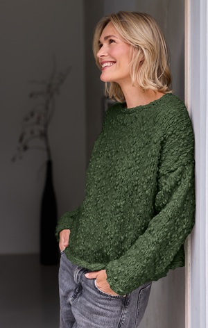 Deze heerlijke cosy trui wordt gebreid van de Lana Grossa Caramella.