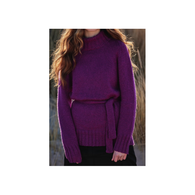 Deze mooie raglantrui met ceintuur om het middel wordt gebreid van de Lana Grossa Cool Merino.