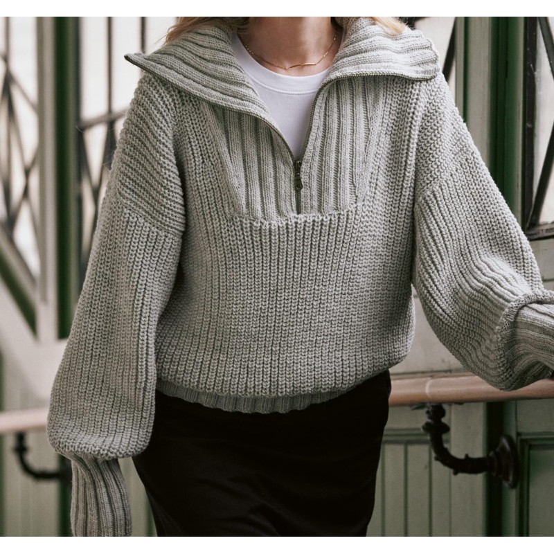 Deze oversized trui met schipperskraag wordt gebreid van het garen Cool Wool Big.