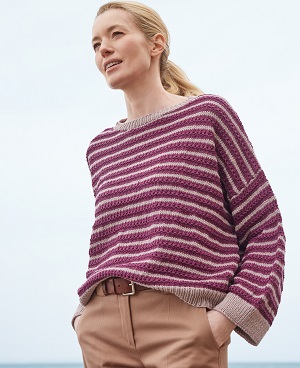 Deze leuke trui met streepjes en subtiel gaatjespatroon wordt gemaakt van Lana Grossa Cool Wool Big.