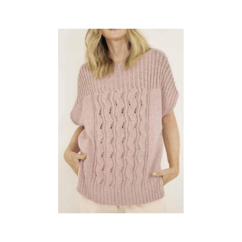 Deze mouwloze trui in ajourpatroon wordt gebreid van Lana Grossa Linarte.