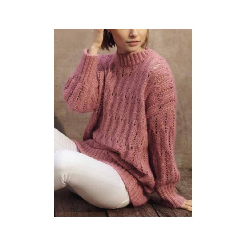Deze mooie trui in ajourpatroon wordt gebreid van Lana Grossa Linarte en Silkhair.