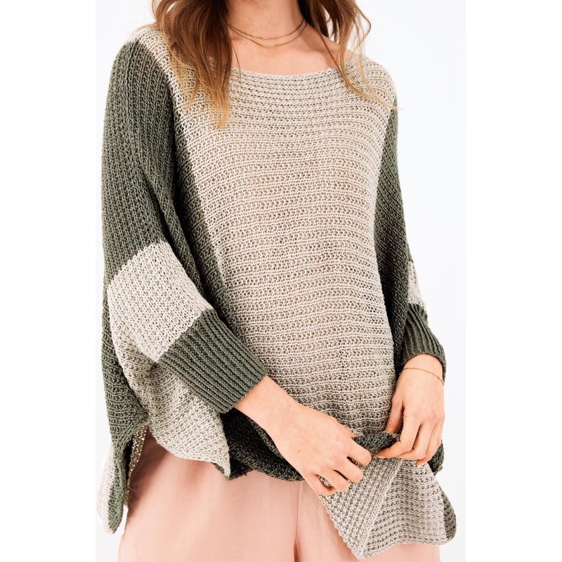 Deze leuke tweekleurige trui wordt gebreid van de Lana Grossa Linarte.