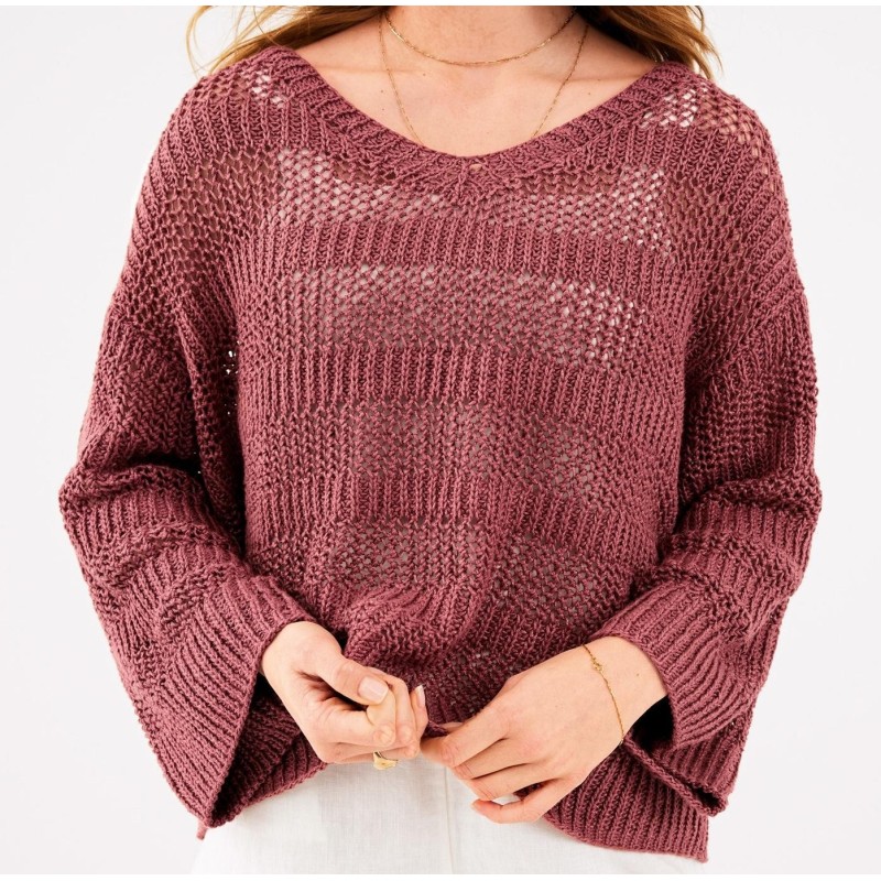 Deze mooie ruime trui in netpatroon wordt gebreid van de Lana Grossa Linarte.