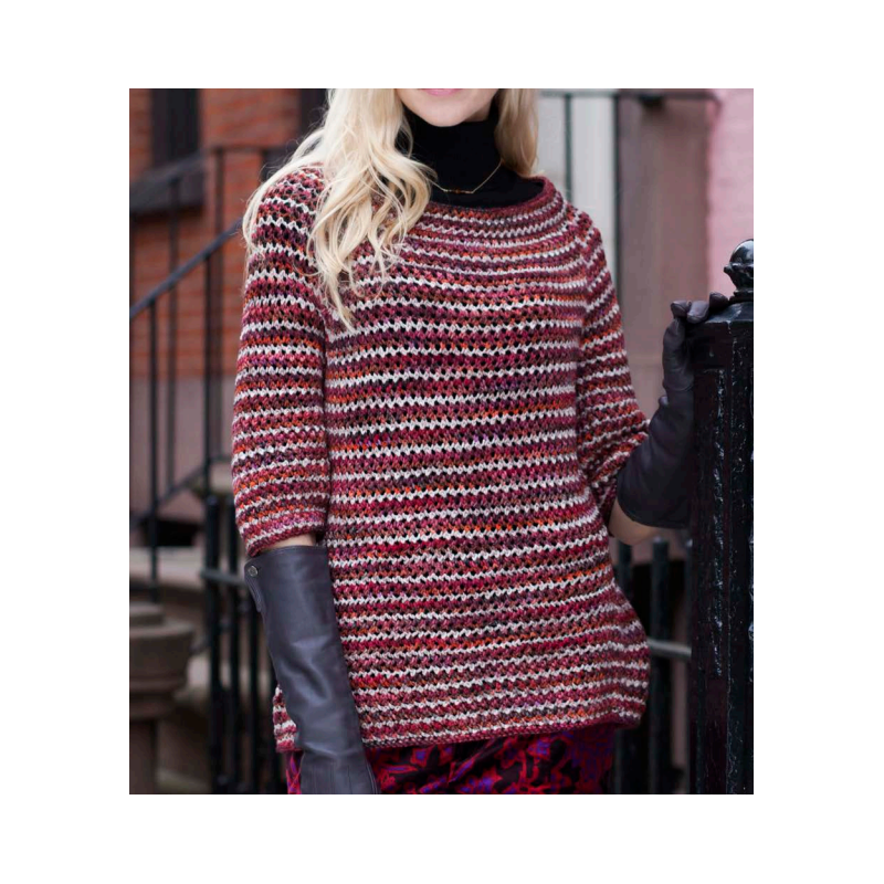 Deze mooie getextureerde gestreepte trui met een 3/4 mouw wordt gebreid van de Malabrigo Rios.