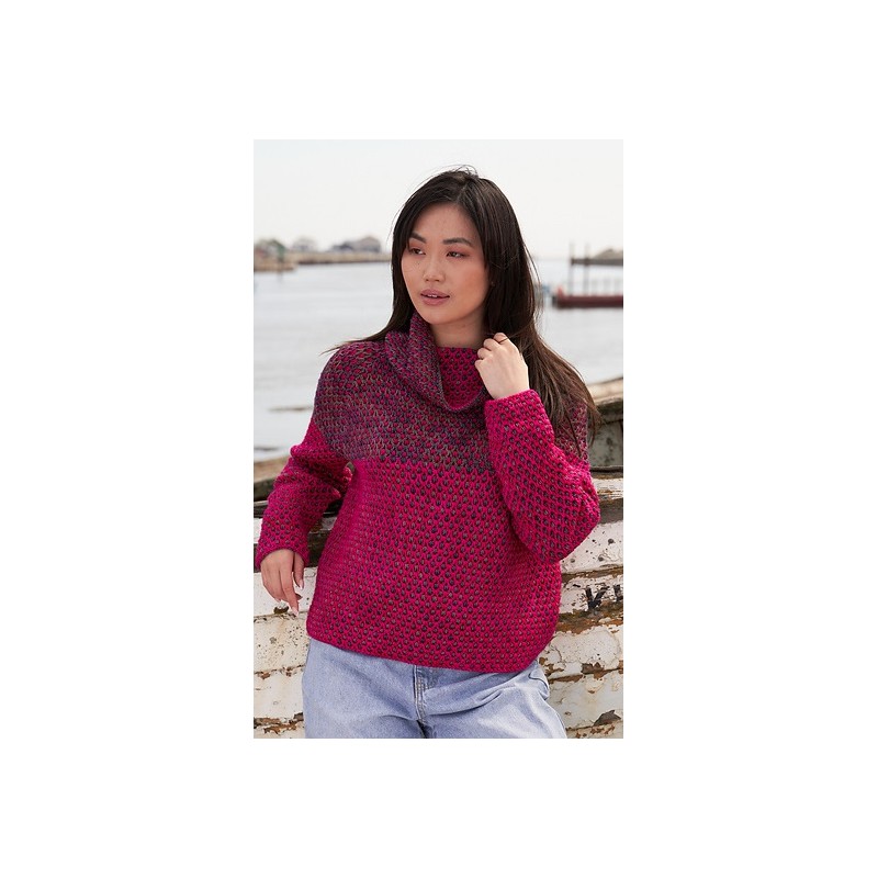 Deze mooie coltrui wordt gehaakt in puntenpatroon van de Malabrigo Sock.