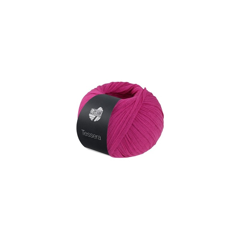 Deze zomerse trui met brede strepen wordt in tricotsteek en in een patroon met lang getrokken steken gebreid van de Lana Grossa Tessera.