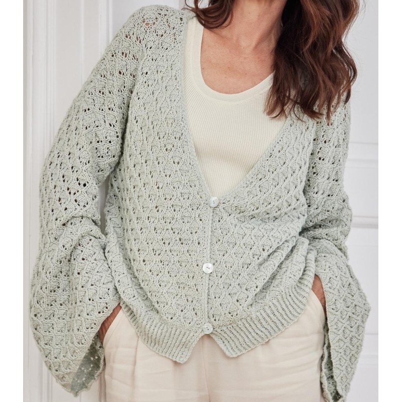 Dit elegante vest met wijde mouwen en ajourpatroon wordt gebreid van de Lana Grossa Alta Moda Cotolana.
