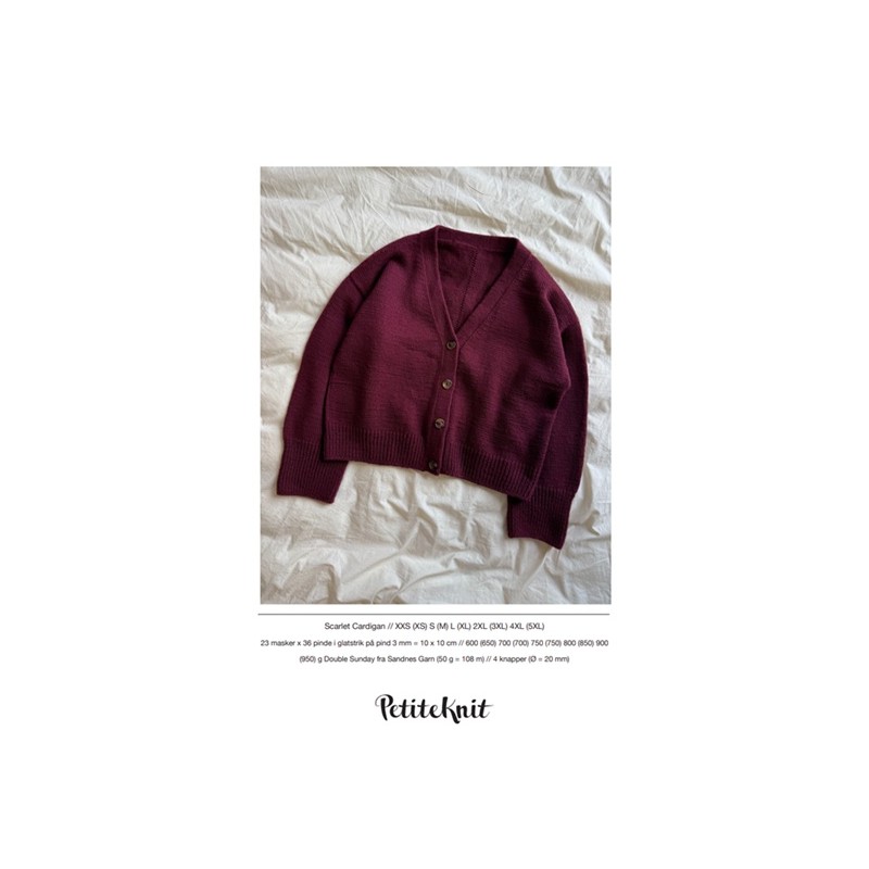 The Scarlet Cardigan van PetiteKnit wordt gebreid van de Double Sunday van Sandnes Garn by PetiteKnit. De Scarlet Cardigan is een klassiek vest met V-hals, dat van boven naar beneden wordt gebreid. Een lijn van verhoogde steken loopt als subtiel detail over de rug, zijkanten en onderkant van de mouwen. Met een nette i-cord rand, een mooie V-hals en dubbelgebreide knopenbies is dit vest tot in de puntjes afgewerkt.