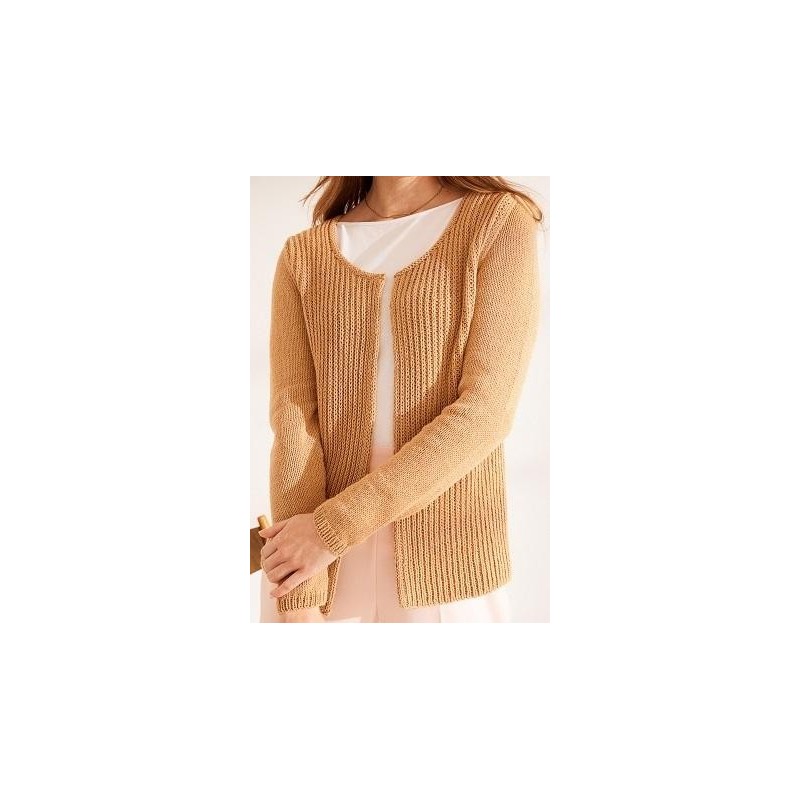 Dit openvallende vest is een klassiek model. Het lijfdeel wordt gebreid in de halve patentsteek en de mouwen in tricotsteek. Het vest wordt gebreid van het elastische garen Elastico van Lana Grossa.