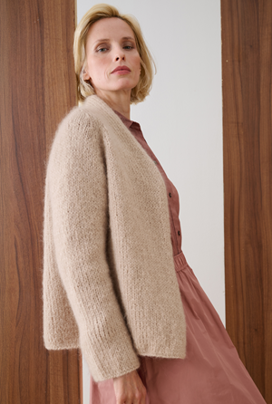 Dit zachte vest wordt in tricotsteek gebreid van de Lana Grossa Mohair di Gio.