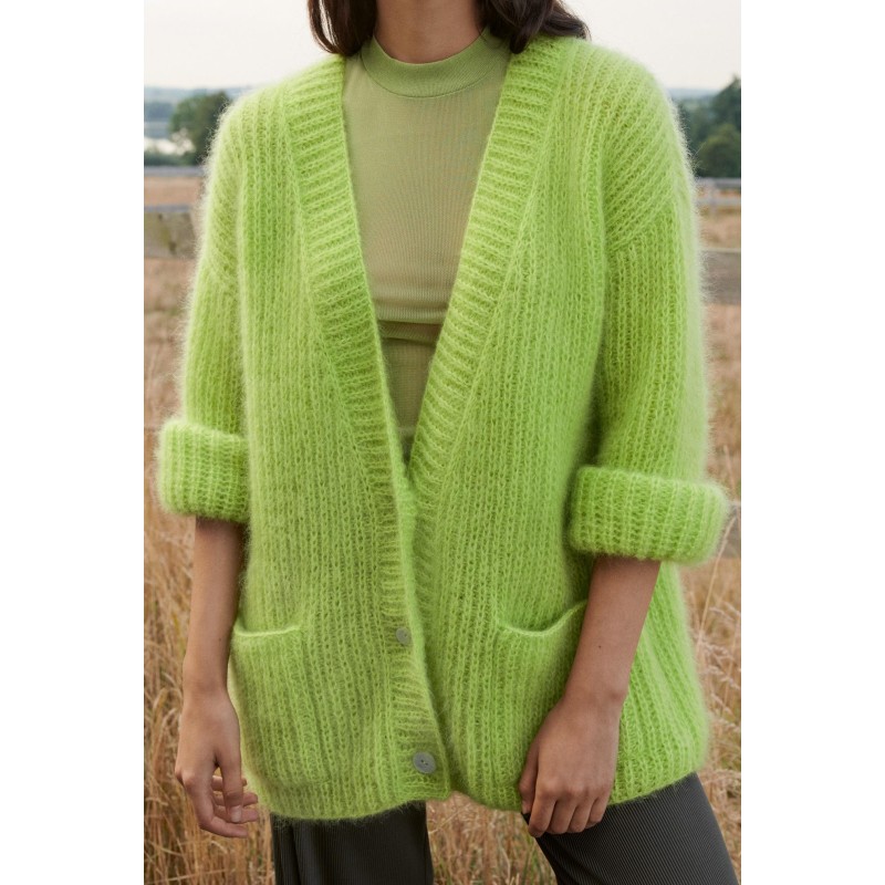 Dit mooie vest wordt gebreid met een driedubbele draad van de Silkhair van Lana Grossa.