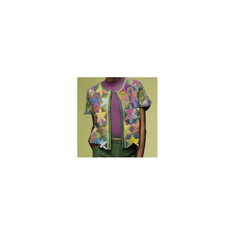 Dit vrolijke vest met sterren wordt gebreid van de Zauberball Crazy van Schoppel-Wolle.