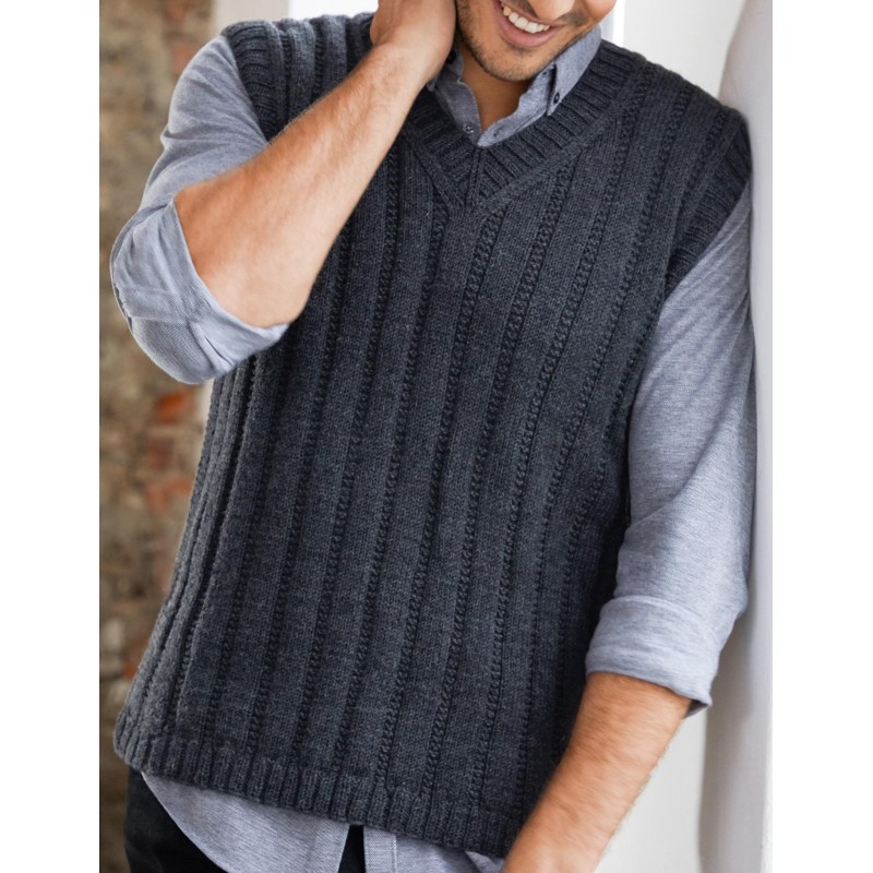 Deze mooie herenspencer met leuk structuurpatroon wordt gebreid van de Lana Grossa Cool Wool.