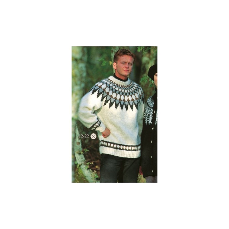 Deze IJslandse herentrui heeft een rustig maar kleurrijk design. De trui wordt in het rond gebreid van Istex Alafosslopi en is ontworpen door Jóhanna Hjaltadóttir voor Lopidesign.is.
