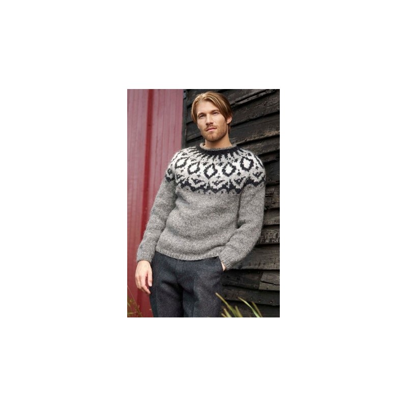 Deze IJslandse herentrui wordt in het rond gebreid en wordt in het patroon omschreven in 2 kleurencombinaties, een blauwe en een grijze variant. Deze trui wordt gebreid van de Istex Alafosslopi en is ontworpen door Védís Jónsdóttir voor Lopidesign.is.