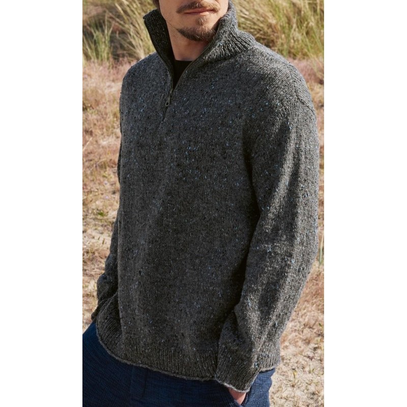 Deze mooie trui met rits en col wordt gebreid van de Landlust Soft Tweed 180 van Lana Grossa.
