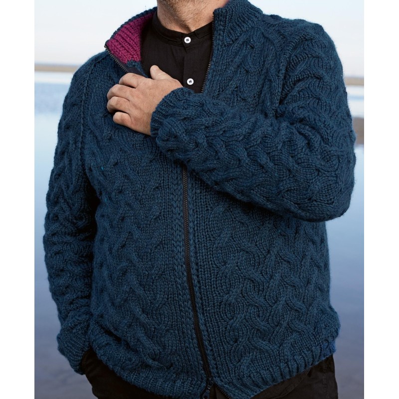 Dit mooie vest met rits wordt gebreid van de Cool Merino Big van Lana Grossa.