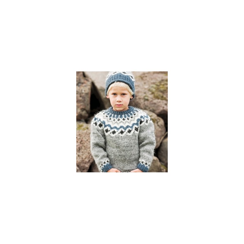 Dit truitje en muts worden in het rondgebreid en staat beschreven in twee kleuren combinaties, een grijze en een groene versie. Dit IJslandse truitje en muts worden met de Lettlopi gebreid en is ontworpen door Védís Jónsdóttir voor Lopidesign.is.