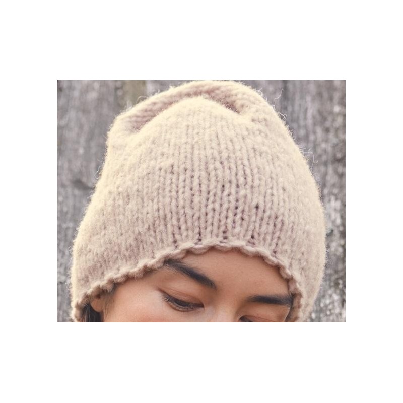 Deze mooie muts wordt gebreid van het garen Ecopuno Chunky van Lana Grossa.