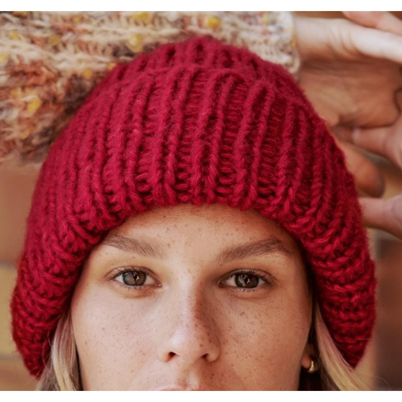 Deze leuke muts in boordpatroon wordt gebreid van de Ecopuno Chunky van Lana Grossa.