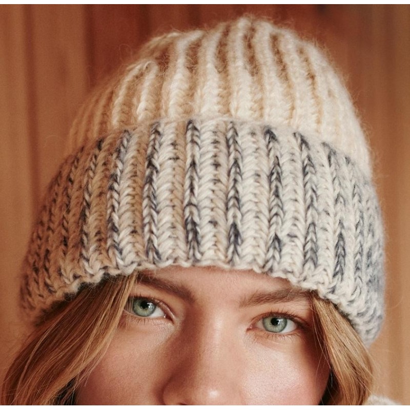 Deze mooie muts in driedubbel gehouden garen in patentpatroon wordt gebreid van de Ecopuno en Setasuri van Lana Grossa.