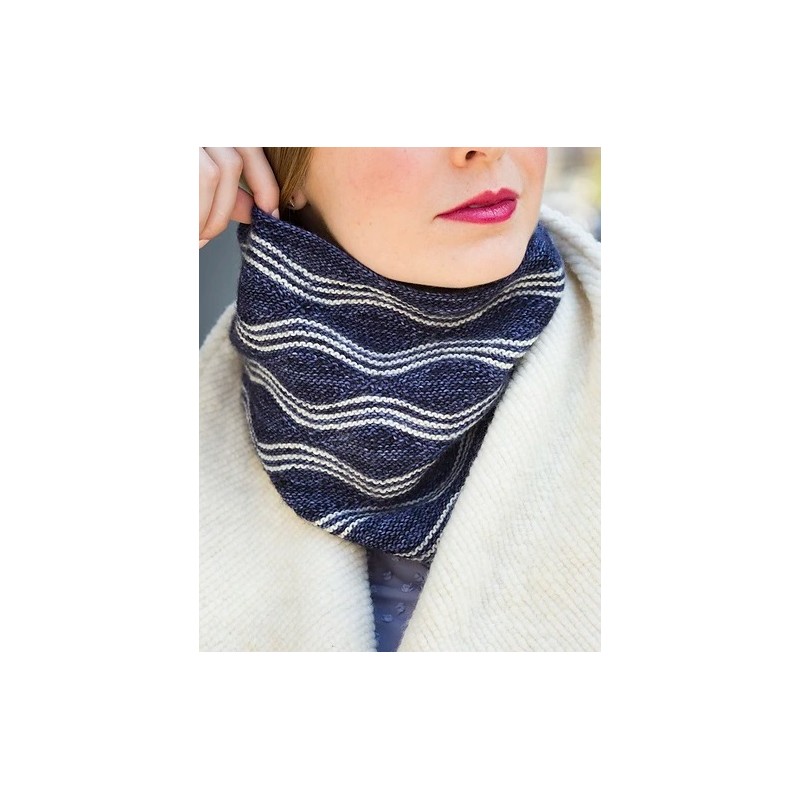 Deze colsjaal met een mooi golfpatroon wordt gebreid van Malabrigo Mechita of Sock.