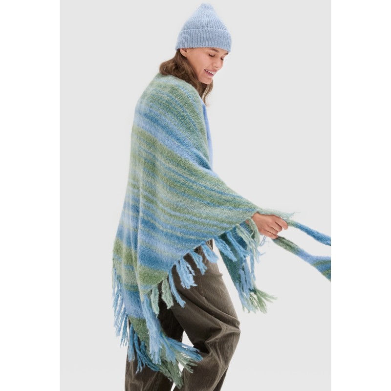Deze grote driehoeksjaal met franjes wordt gebreid van de Lana Grossa Gigante.