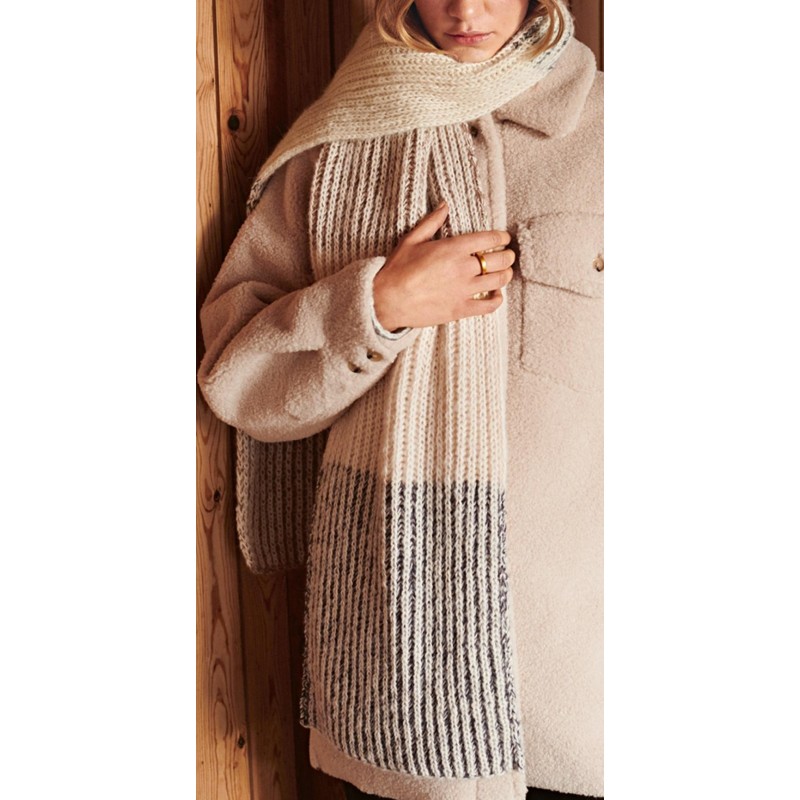 Deze heerlijke sjaal in patentpatroon wordt gebreid van de Ecopuno en Setasuri van Lana Grossa. De kleurvlakken verschillen iets van elkaar in grootte, wat zorgt voor een speels effect.