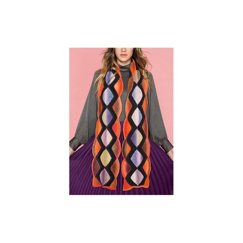 Deze mooie sjaal met diamantenpatroon wordt gebreid van de Zauberball Crazy van Schoppel Wolle.