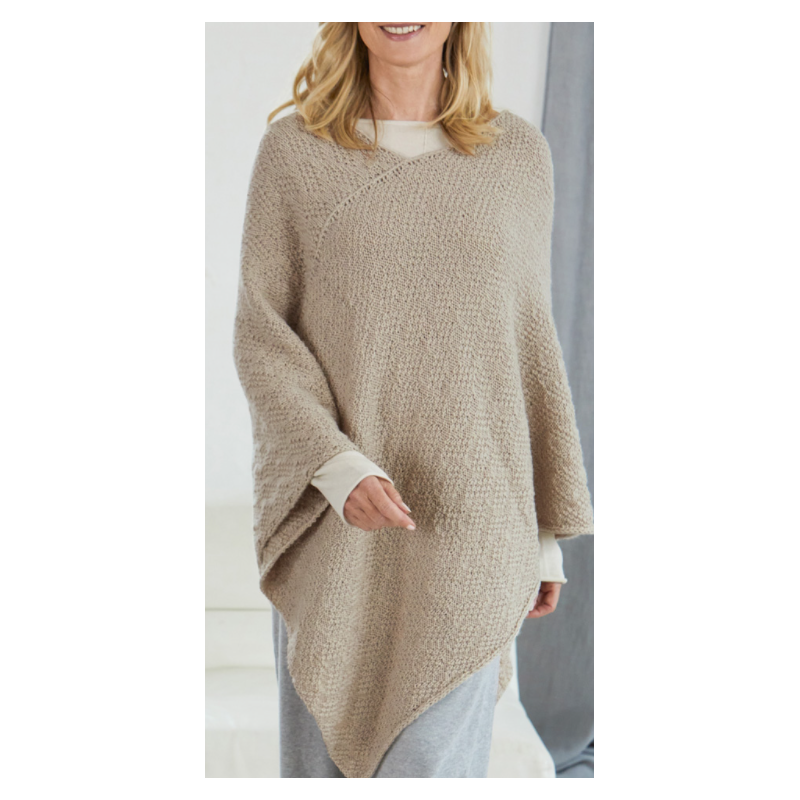 Deze mooie poncho met V-hals wordt gebreid van Merino Uno van Lana Grossa.