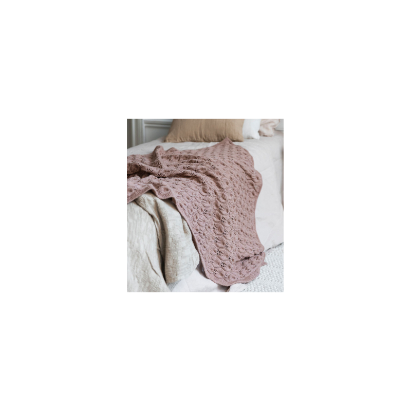 Deze mooie deken met ajour bladpatroon wordt gebreid van de 7 Brothers van Novita.