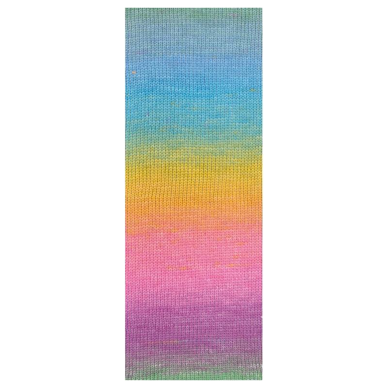 Deze leuke van kleur verlopende vlaggenlijn wordt gehaakt van 1 bol Lana Grossa Cotonella.