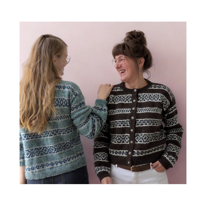Deze Mosaic Muse Cardigan wordt in het rond gebreid in de mozaïek techniek en heeft een knipbies. Dit vest wordt gebreid van de Superkid Seta van Lana Grossa of de Lettlopi.