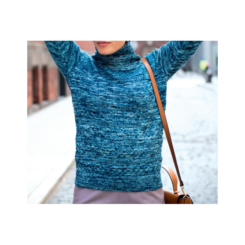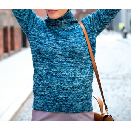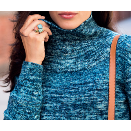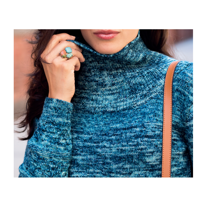 Deze mooie trui met een colkraag en honingraatsteek wordt gebreid van de Malabrigo Mechita of Sock. Dit patroon kan ook met de Malabrigo Ultimate Sock gebreid worden.