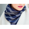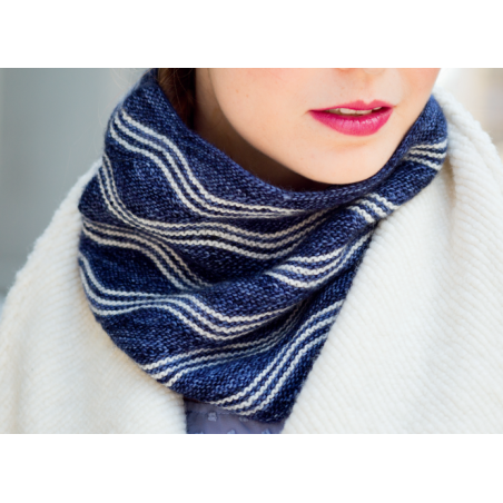 Deze colsjaal met een mooi golfpatroon wordt gebreid van Malabrigo Mechita of Sock.