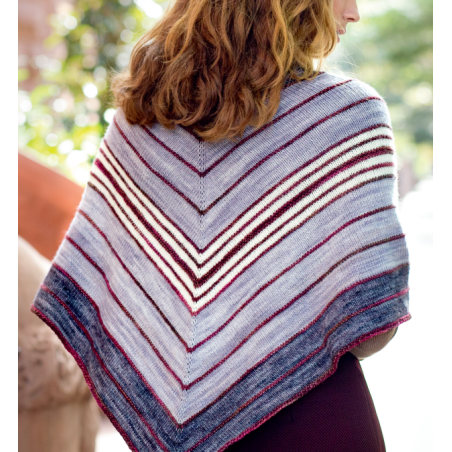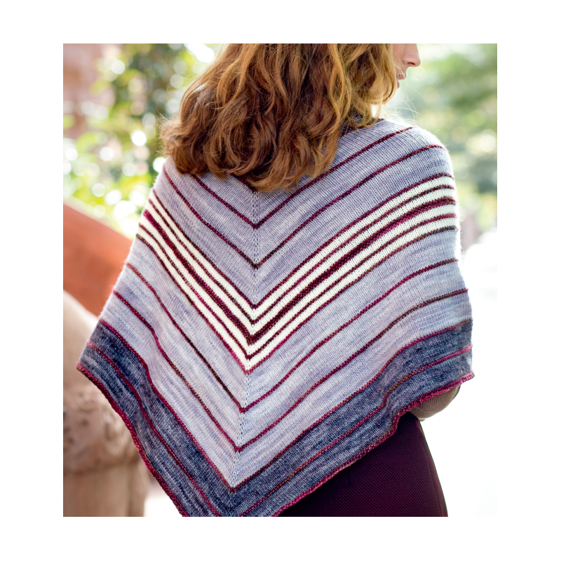 Deze leuke gestreepte driehoeksjaal wordt gebreid van de Malabrigo Mechita of Sock